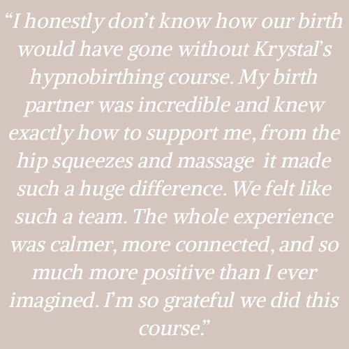 We cover the full physiology of birth, partner support tools like massage, and how to create a personalised birth preferences plan. You’ll also receive several professionally recorded hypnosis tracks to practice at home, plus ongoing guidance and support and a hypnobirthing handbook from me right up to the big day. With more time to dive deeper into proven hynobirthing techniques the full course will leave you feeling fully confident and supported heading into birth.